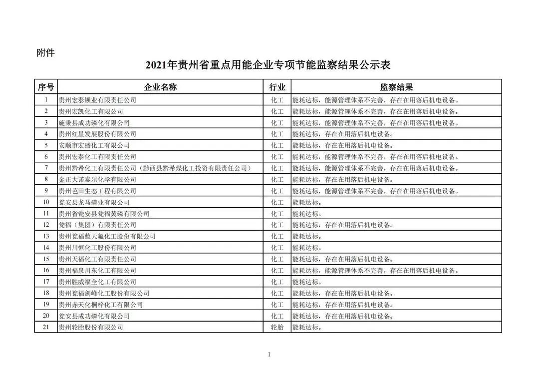 附件:2021年贵州省重点用能企业专项节能监察结果公示表