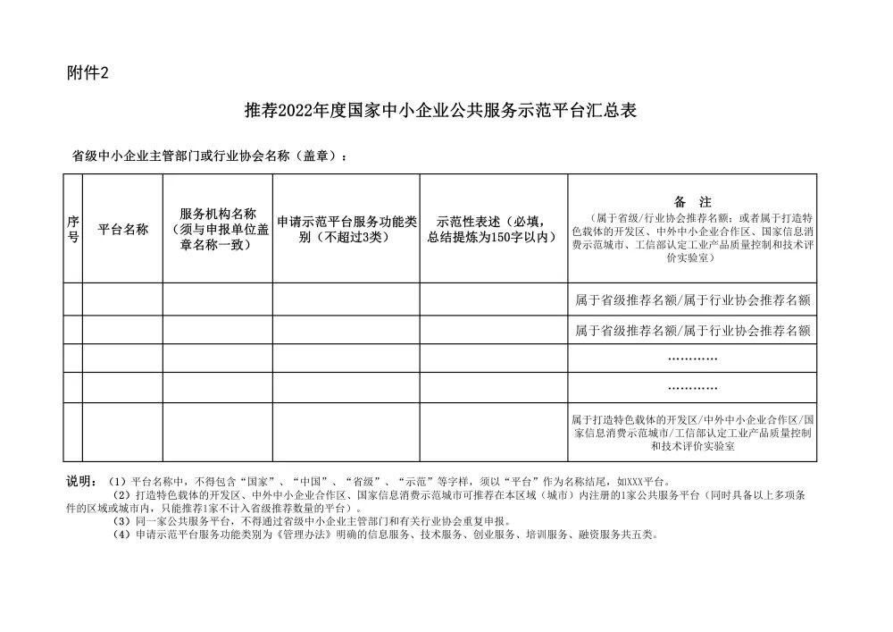 2.推荐2022年度国家中小企业公共服务示范平台汇总表