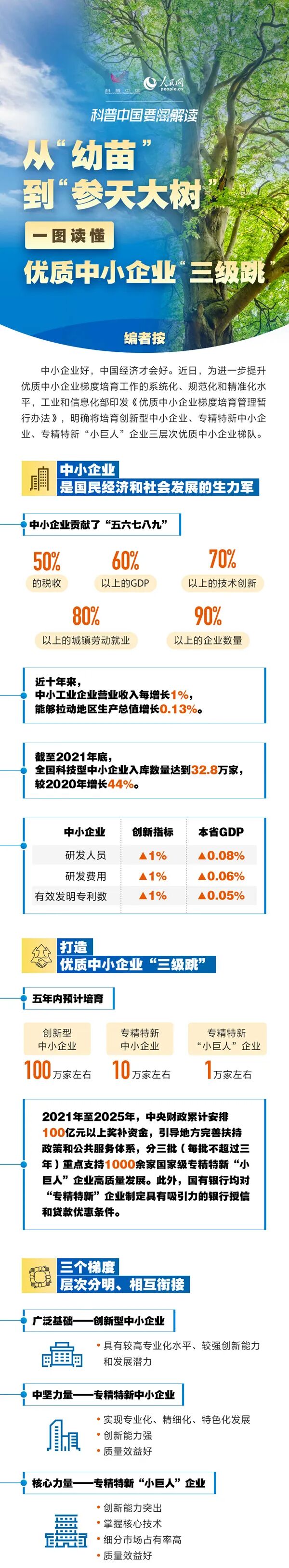 中小企业好,中国经济才会好。近日,为进一步提升优质中小企业梯度培育工作的系统化、规范化和精准化水平,工业和信息化部印发《优质中小企业梯度培育管理暂行办法》,明确将培育创新型中小企业、专精特新中小企业、专精特新“小巨人”企业三层次优质中小企业梯队。