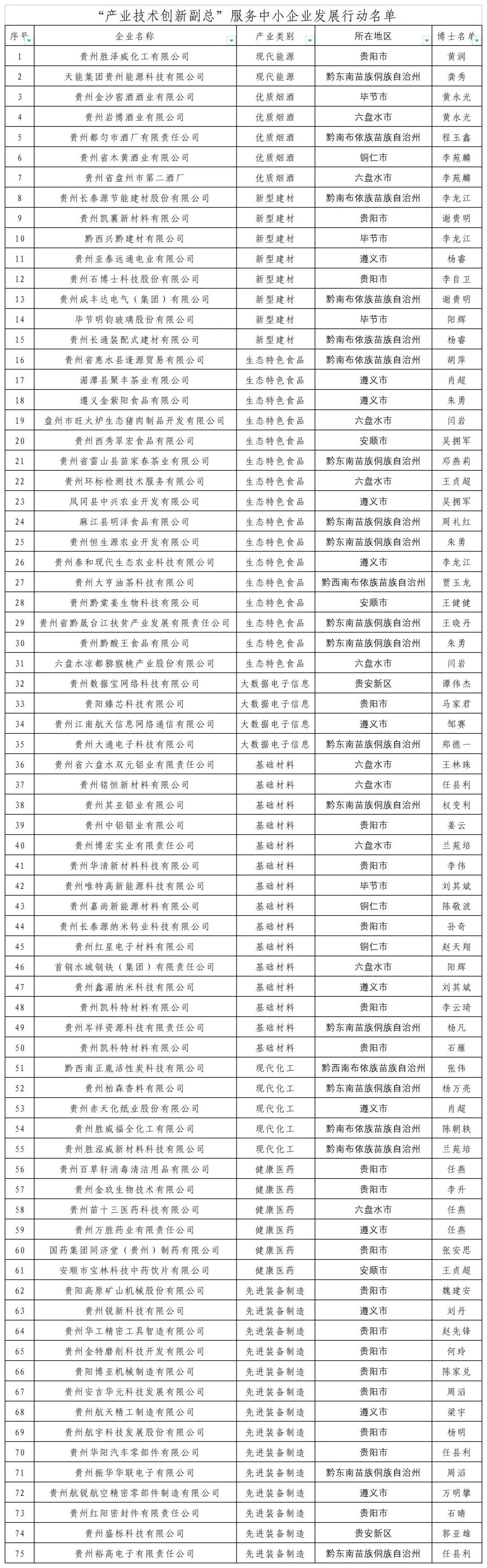 根据《贵州省工业和信息化厅 贵州大学关于组织开展“产业技术创新副总”服务中小企业发展行动的通知》(黔工信科技〔2022〕40号)要求,现将入选的企业和“产业技术创新副总”名单予以公示。请社会各界监督,如有异议,请在公示期内将意见书面反馈至省工业和信息化厅(科技处)。