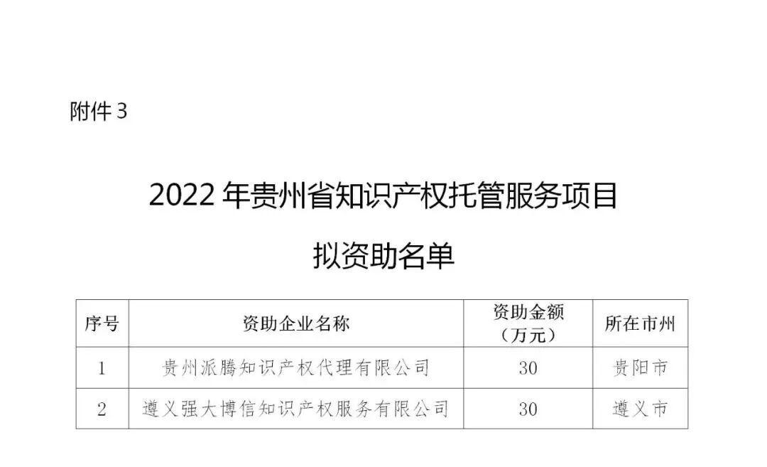 3.2022年贵州省知识产权托管服务项目拟资助名单