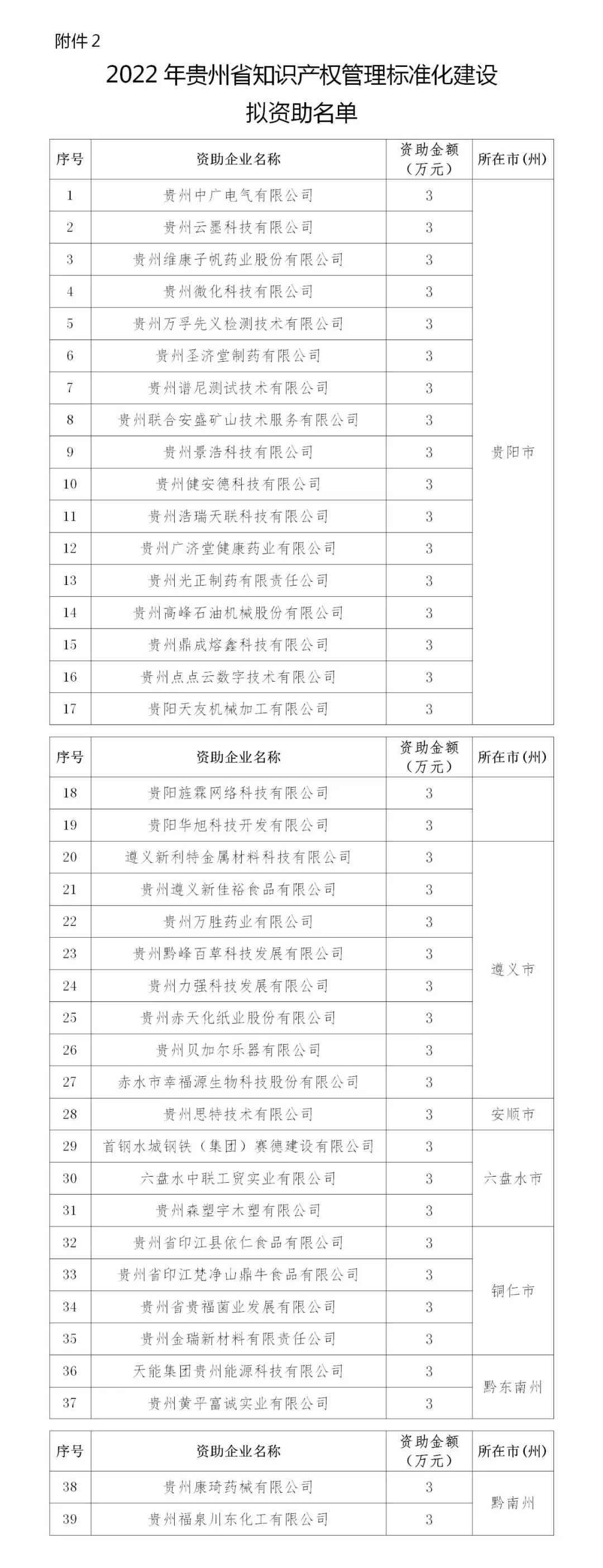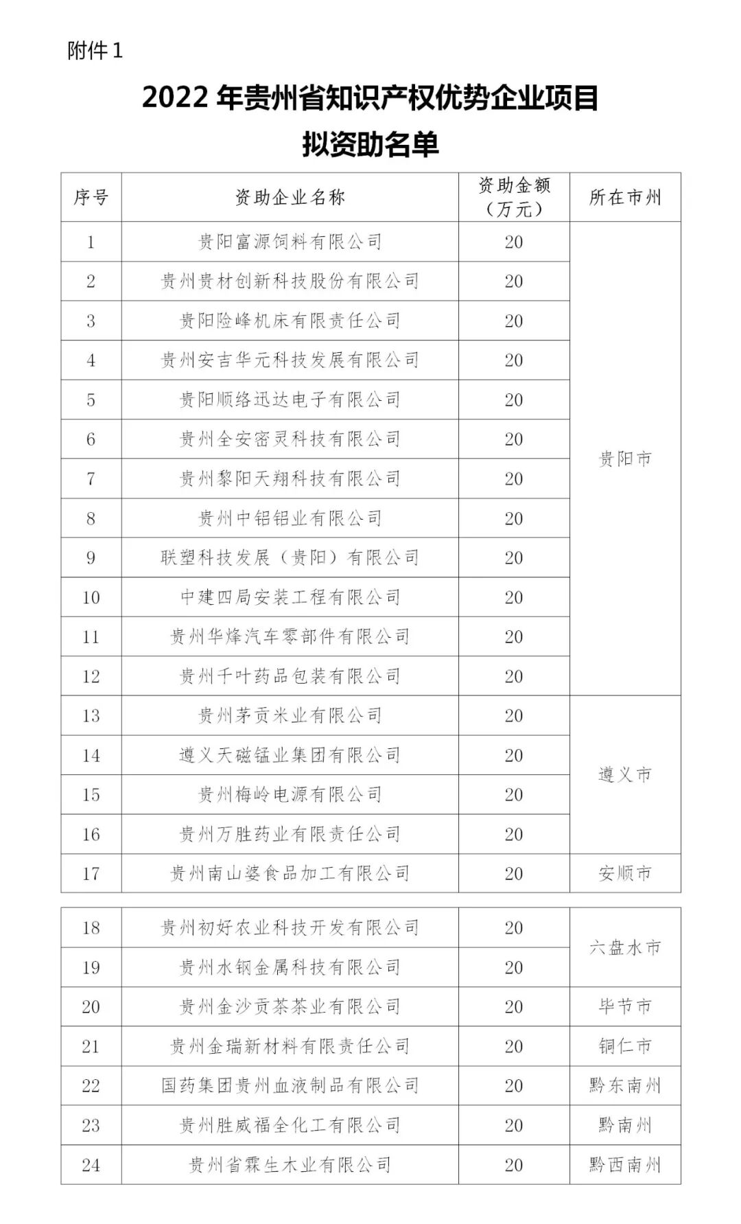 1.2022年贵州省知识产权优势企业项目拟资助名单