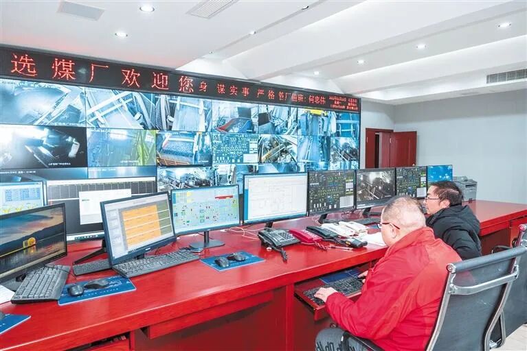 贵州盘江精煤股份有限公司山脚树矿智能综采指挥室工作井然有序。