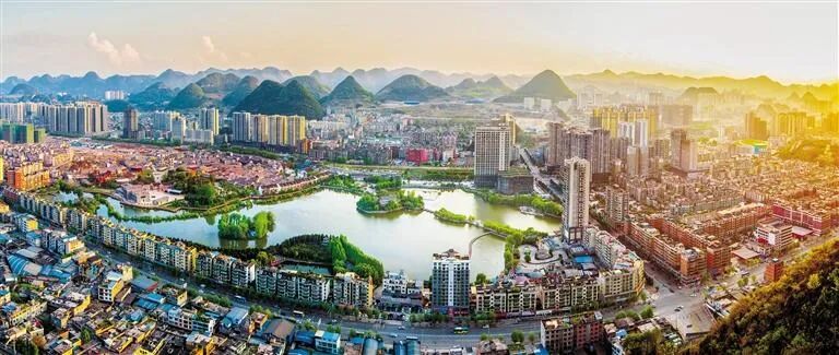 2016年北盘江大桥通车。自此,云端高桥肩负起连接滇黔两省、贯通西南地区交通干线之使命。而今,高桥之上,小轿重卡飞奔疾驰,通商易货广陌通衢;高桥之下,六盘水叩开山门向蔚蓝,苦心孤诣筹谋“越壑”良策,用好用活推动高质量发展的“桥和船”,幸福六盘水大道如砥。党的十八大以来,六盘水市坚持以转型升级推动经济社会突破式发展,矢志不渝奔跑在“日子越过越红火,生活越来越幸福”征程上,演绎出跨越式蝶变的凉都发展传奇。从创新探索“三变”改革到获批创建全国农村改革试验区、全国产业转型升级示范区,从山地特色农业风生水起到工业经济筋强骨壮、旅游品牌遐迩闻名,十年厚积薄发,六盘水用高质量发展的底色丰富幸福生活的成色,走出了一条成长型资源城市的转型发展之路,地区生产总值迈入千亿元大关,实现2倍增长。徜徉在纵横阡陌,抬眼望高楼林立,俯首见绿意成诗。十年踔厉奋发,六盘水把群众的“幸福指数”作为衡量为人民服务实效的新标尺,提前一年整体摆脱绝对贫困;全国文明城市花开凉都;获批全国市域社会治理现代化试点……一张张因产兴业旺、乐业安居、政惠人和绽放的灿烂笑脸,成为幸福最生动的定义。转巨石于万仞、驭轻舟于万重,在新征程中赶考交卷。六盘水市衷心拥护“两个确立”、忠诚践行“两个维护”,抢抓国发〔2022〕2号文件重大历史机遇,坚定不移围绕“四新”主攻“四化”主战略,一门心思抓高质量发展,奋力谱写幸福六盘水精彩篇章。