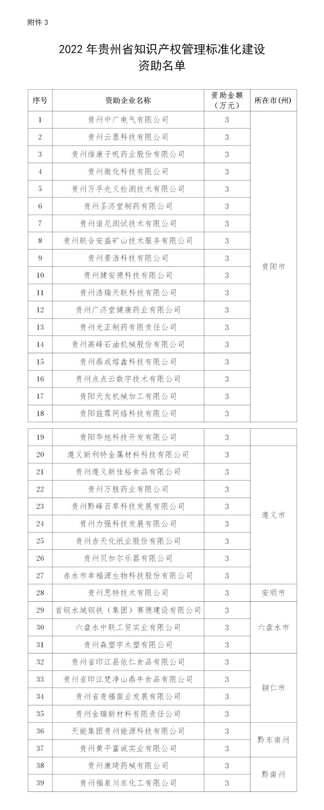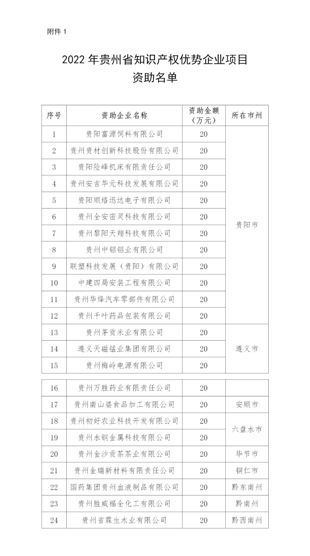 附件:1.2022年贵州省知识产权优势企业项目资助名单