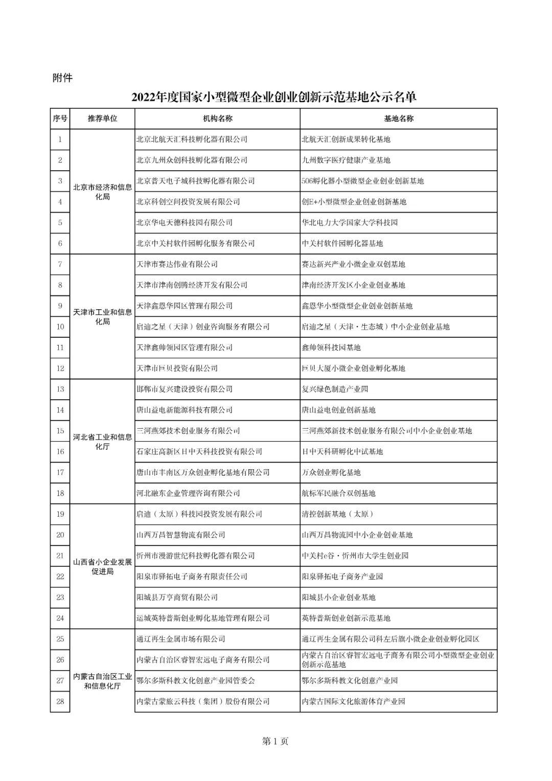 附件:2022年度国家小型微型企业创业创新示范基地公示名单.pdf