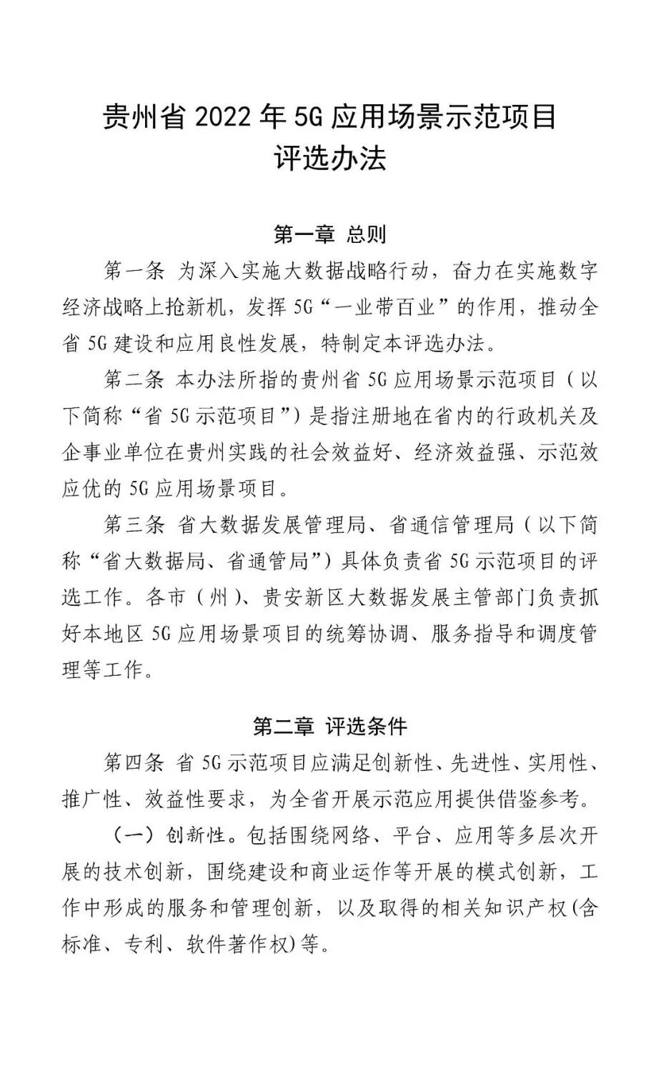 为持续推动全省5G建设和应用良性发展,经研究,决定启动贵州省2022年下半年5G应用场景示范项目评选工作。现将有关事项通知如下: