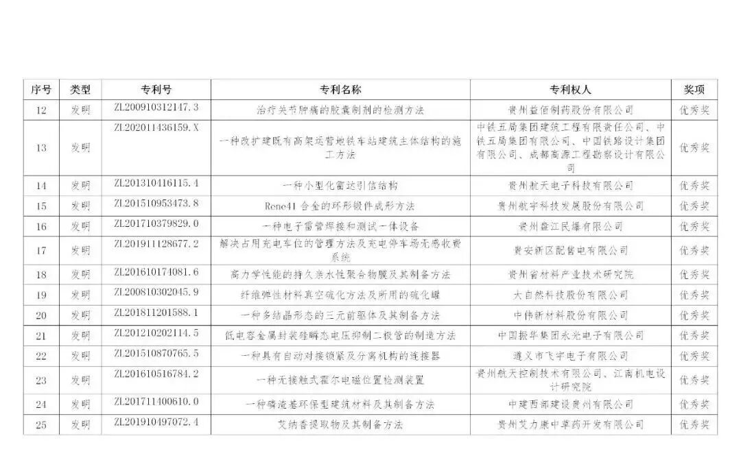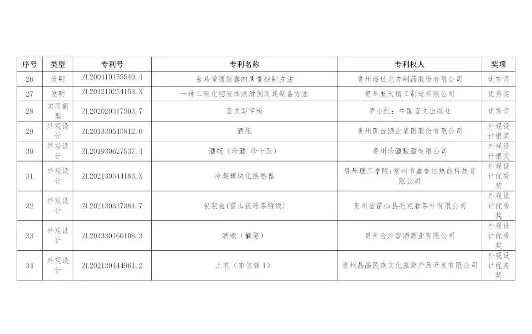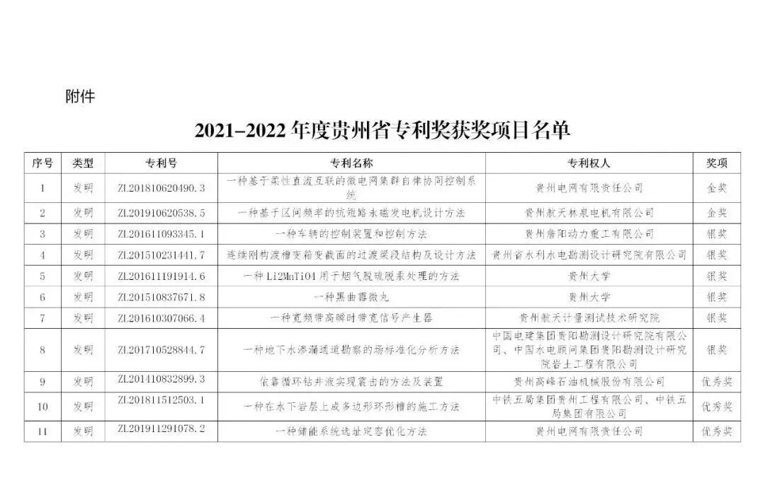 附件:2021-2022年度贵州省专利奖获奖项目名单
