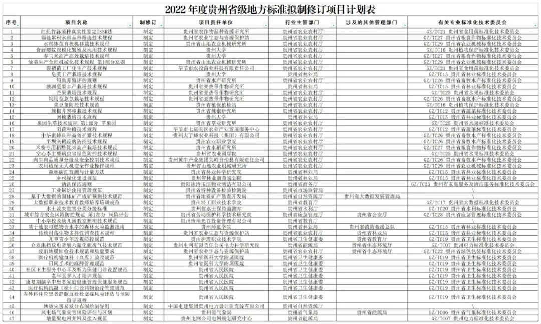 附件:2022 年度贵州省级地方标准拟制修订项目计划表