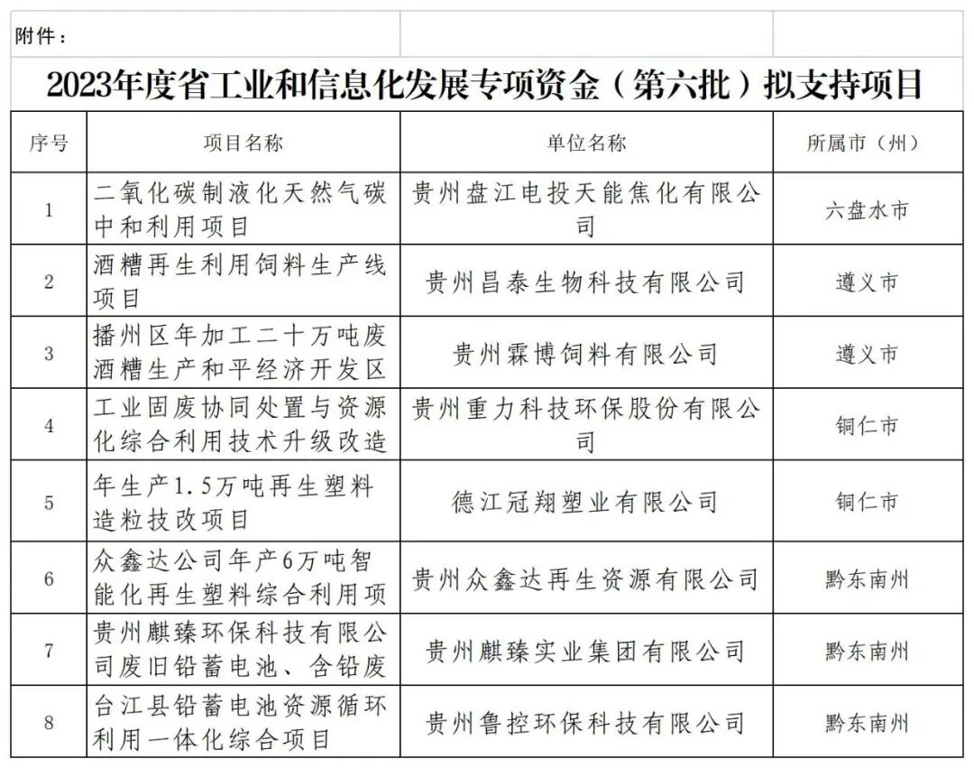 根据《省工业和信息化厅关于做好2023年省级财政专项资金储备项目入库申报工作的通知》文件要求,经自愿申报、地方推荐、项目评审等程序,拟支持贵州盘江电投天能焦化有限公司等8个项目,现予公示(见附件)。公示期为2023年7月4日-7月10日。公示期间,如有异议,请及时与省工业和信息化厅联系,联系电话:0851-88668361。