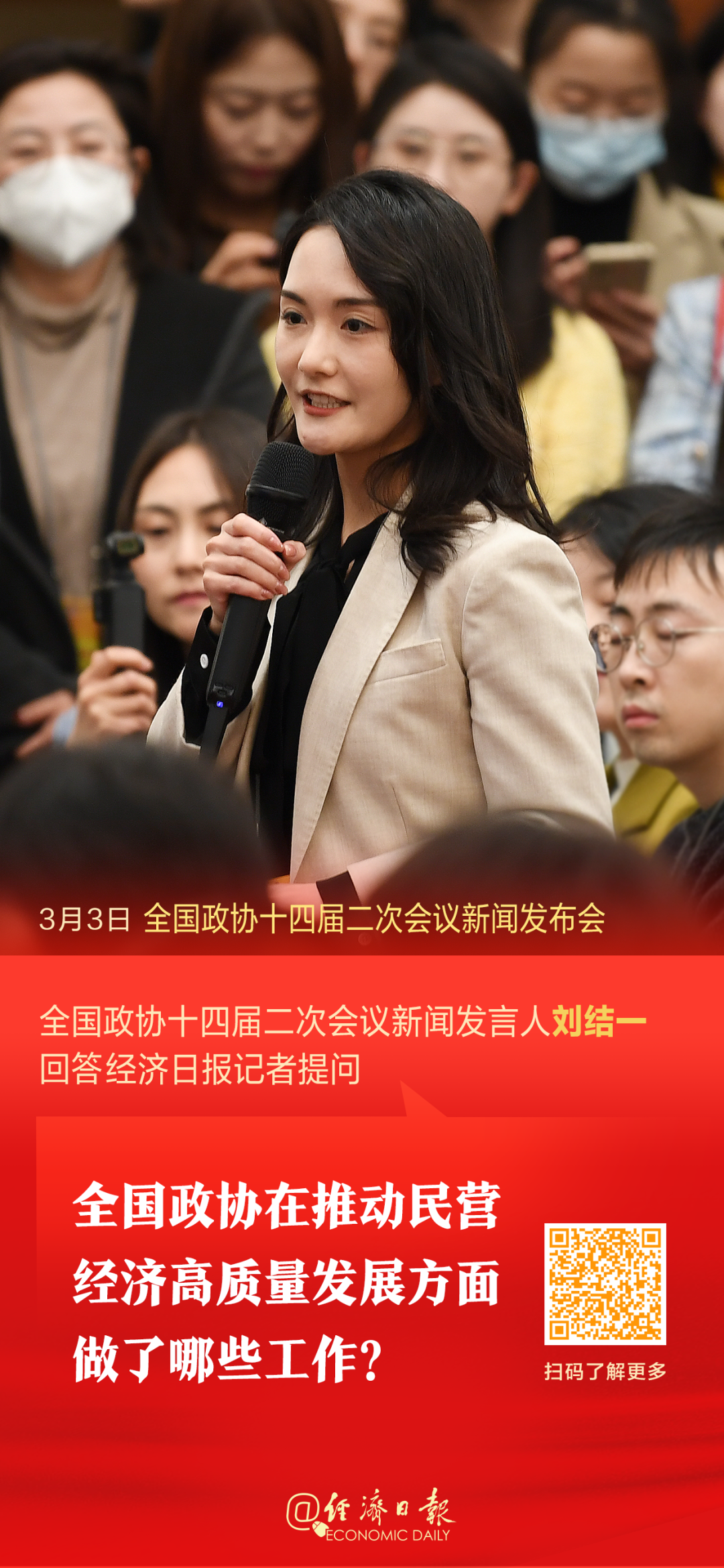 3月3日,全国政协十四届二次会议新闻发布会在北京人民大会堂举行。 经济日报记者李景录摄。