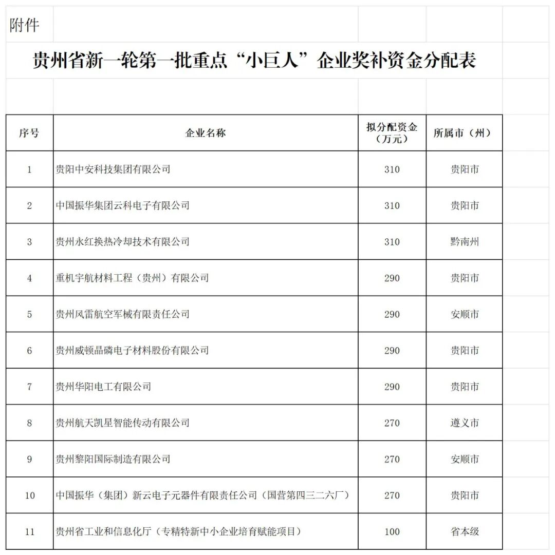 附件:贵州省新一轮第一批重点“小巨人”企业奖补资金分配表.xls