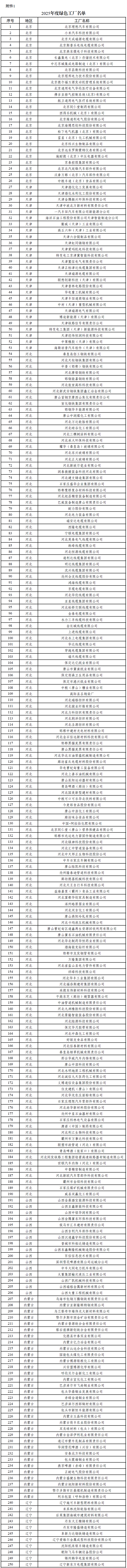 1. 2025年度绿色工厂名单