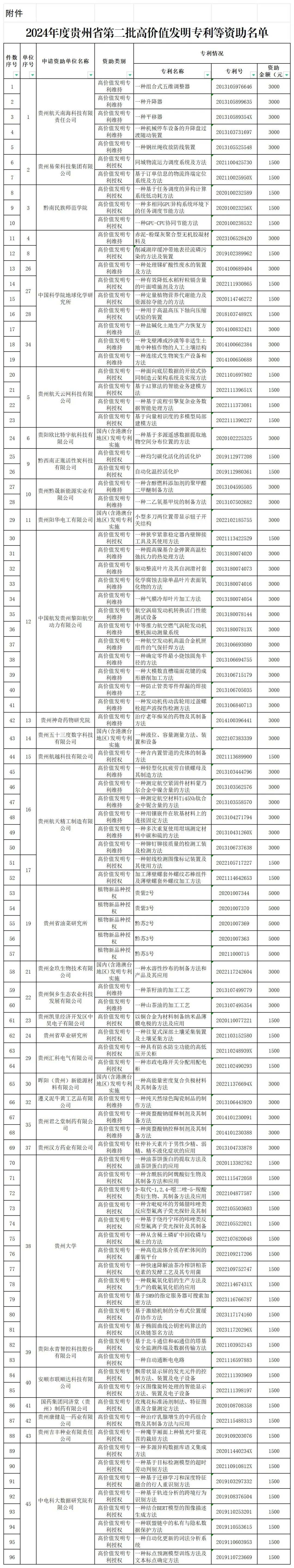 附件:2024年度贵州省第二批高价值发明专利等资助名单