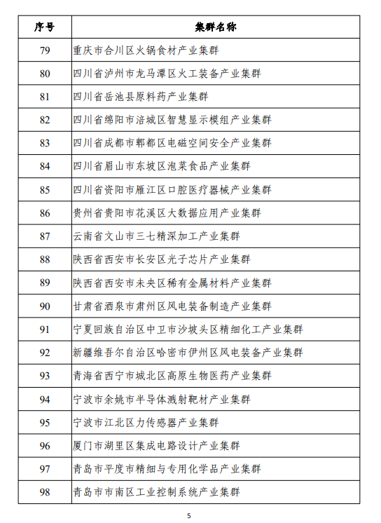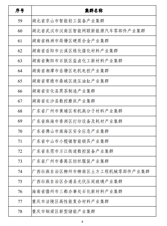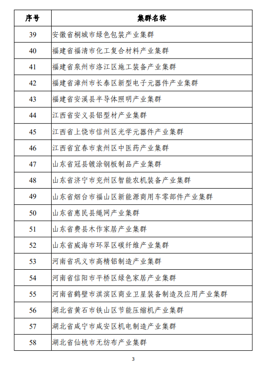 根据《促进中小企业特色产业集群发展暂行办法》(工信部企业〔2022〕119号)、《工业和信息化部办公厅关于组织推荐2024年度中小企业特色产业集群的通知》(工信厅企业函〔2024〕122号),我部组织开展了2024年度中小企业特色产业集群的认定评审工作,通过初核、推荐和专家评审等程序,择优遴选形成了《2024年度中小企业特色产业集群公示名单》,共计100个。现予以公示。欢迎社会各界参与监督,如有异议,请实名反馈工业和信息化部中小企业局,并提供佐证材料和联系方式,以便核实查证。附件:2024年度中小企业特色产业集群公示名单.pdf