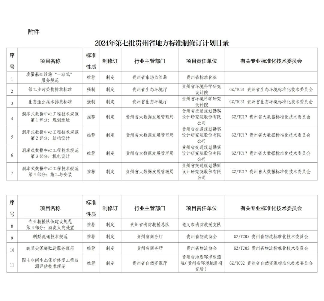 附件:2024年第七批贵州省地方标准制修订计划目录