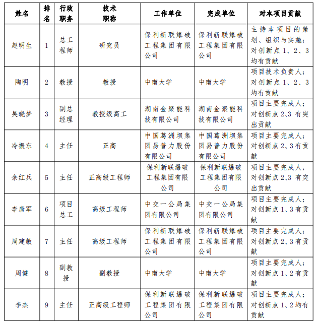 主要科技贡献:负责建立岩石与炸药配方智能匹配模型,负责智能化装备及技术的标准化流程编制。